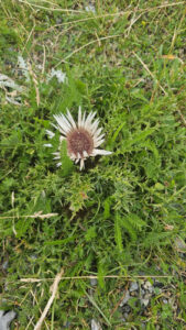 Mittlerweile hat der Nebel die Sonne verschluckt. Alles wirkt mystisch und fast unwirklich. Zwischen Schafen und Nebelschwaden entdecken wir auch die Silberdistel. Wusstet ihr, dass diese geschützte Pflanze eine natürliche Wetteranzeigerin ist? Ist die Blüte offen, gibt es Sonnenschein, wenn sie geschlossen ist, kündigt sich Regen an.
