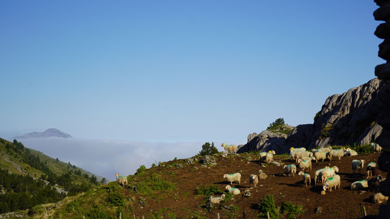 Stell dir vor: Dir steigt morgenfrische Bergluft in die Nase, in den Ohren eine idyllische Stille, die nur vom Läuten der Kuh- und Ziegenglocken und zwischendurch vom Blöken unzähliger Schafe unterbrochen wird. Das ist die Arbeitsumgebung von Cédric und Bastien von der Ferme Récebire, die hier oben, auf 1.700 Metern Höhe, auf ihrer Sommeralm Cabane d’Arlas, den berühmten baskischen Schafskäse Ossau-Iraty herstellen. Und genau das ist der Grund, warum unser Wecker im Urlaub morgens schon um 4 Uhr klingelte …