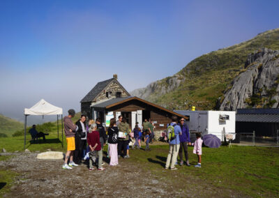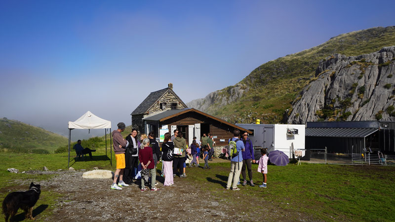 Als wir gegen halb neun ankommen, treffen wir Cédric beim Melken. Langsam trudeln auch andere Besucher ein. Auch sie haben mitbekommen, dass der Verein der Sommeralmen im Béarn, „Estives du Béarn“ zu „Les cabanes ouvertes“ eingeladen hat – den Tagen der offenen Sommeralm. Und genau das hat uns hierhergeführt, zur Cabane d’Arlas.