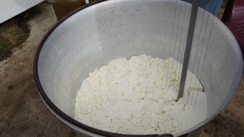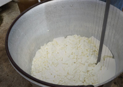 Zuerst wird die frisch gemolkene Schafsmilch mit Milchsäurebakterien und Lab versetzt. Sobald sie gerinnt, schneiden sie den Bruch in kleine Körner und erwärmen ihn vorsichtig. Anschließend wird der Bruch von Hand in Formen gefüllt, gepresst und zum Abtropfen gebracht.