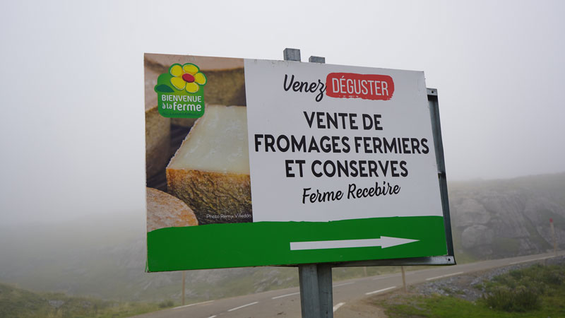 Das Hinweisschild der „Cabane d’Arlas“ – auf der einen Seite Französisch, auf der Rückseite Spanisch – zeigt schon: Hier sind wir nur einen Schafssprung von der spanischen Grenze entfernt! An diesem idyllischen Ort verbringen Cédric und sein Team mit ihren Tieren den Sommer. Warum? Weil diese Bergweiden mit ihren duftenden Wildkräutern und Blumen eine einzigartige Milch liefern, aus der hier der Almkäse (Fromage d’estive) hergestellt wird – ein traditionelles Produkt der Pyrenäen-Hirtenkultur. Dabei genießt die Cabane d’Arlas einen kleinen Luxus: Dank ihrer direkten Nähe zur Skistation La Pierre Saint-Martin gibt es hier sogar Strom und fließend Wasser – die meisten anderen Sommeralmen haben dieses Glück nicht.